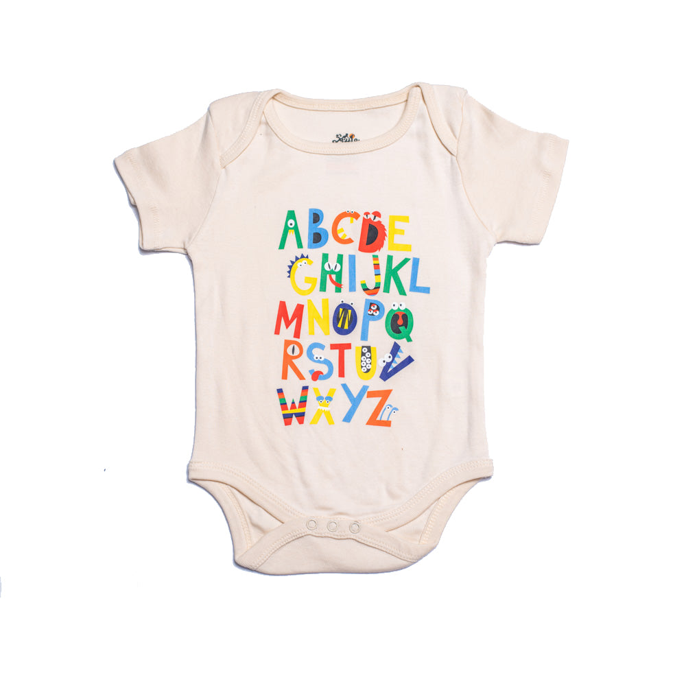 Suitable Romper for any Occasion, from Family meetings to Casual outings with Learning and creative print to make little one familiar with Alphabets, Beautiful butter cream color, perfect for summer and adding a pop of color to your Baby's wardrobe