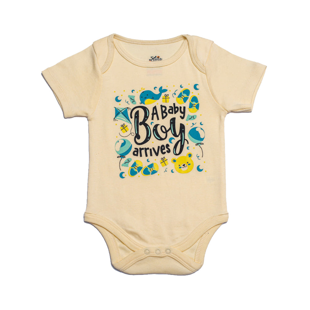 All set baby Romper for any Occasion your baby appears in after coming to this world with Print about Announcement of Arrival of boy in your family in Beautiful Transparent color, perfect for summer and adding a pop of color to your Baby's wardrobe