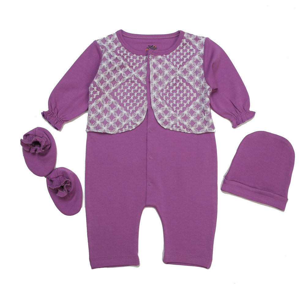 Perfect Baby Winter fashions romper with warm Socks and cap, and fancy embellishments details for your little one to dress in all stylish and comfortable in this winter
