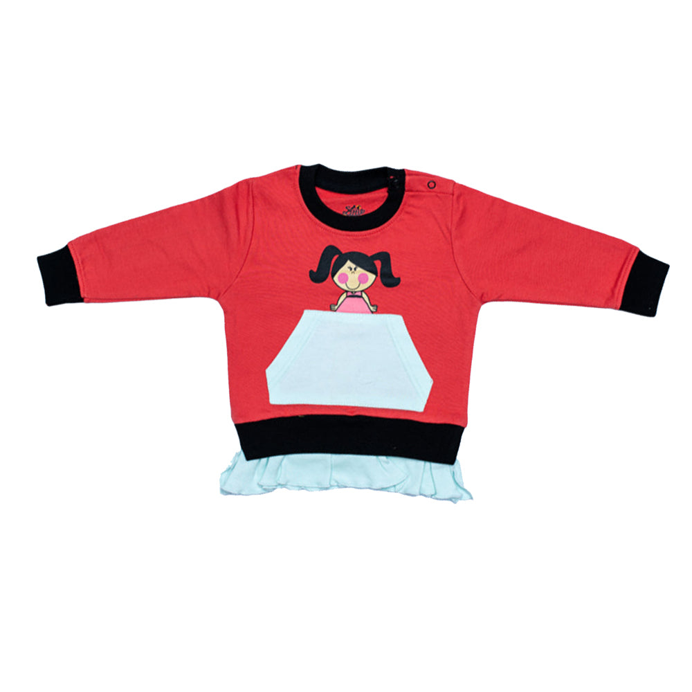 Perfect Casual / Semi Formal Sweatshirt with warm pocket and center print to dress your little girl in all stylish and comfortable in this winter
