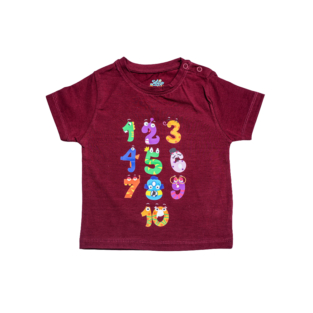 Suitable Tee for any Occasion, from Family meetings to Casual outings with Learning and creative print to make little one familiar with Numbers Beautiful Maroon color, perfect for summer and adding a pop of color to your Baby's wardrobe